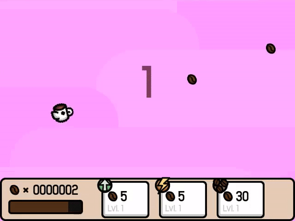 - Coffee beans allow you to purchase upgrades. Flap-Up increases the force of your flaps, Speed-Up boost your speed, and Bean-Up expands the amount of coffee beans on each floor.
